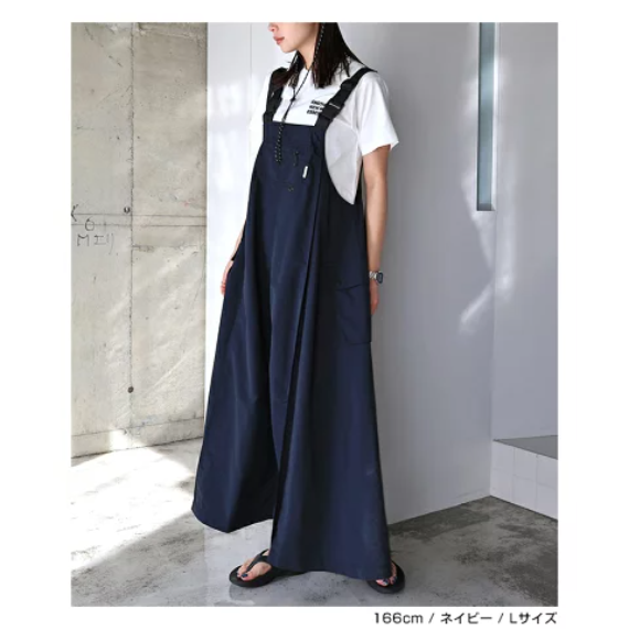 【日本 andme】多機能尼龍吊帶長裙 抗UV接觸涼感潑水加工